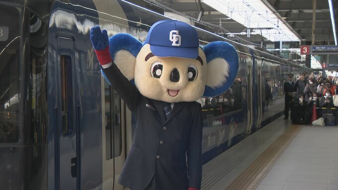 プロ野球のキャンプインを前に、ドラゴンズのマスコット"ドアラ"をラッピングした名鉄特急の運行が始まりました。