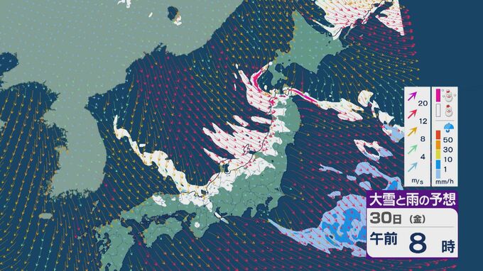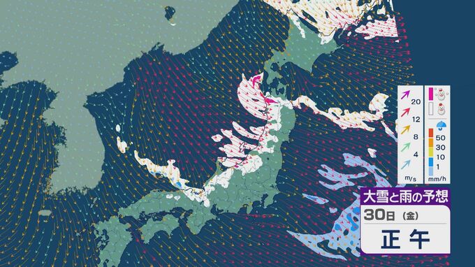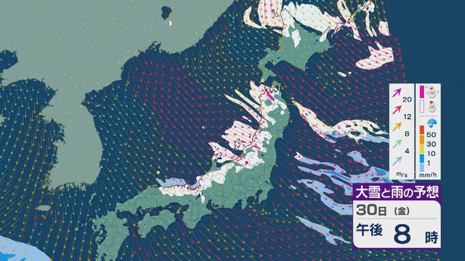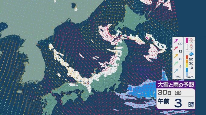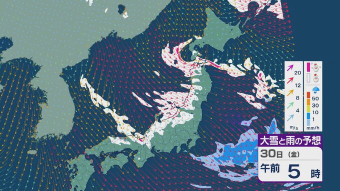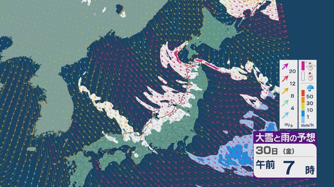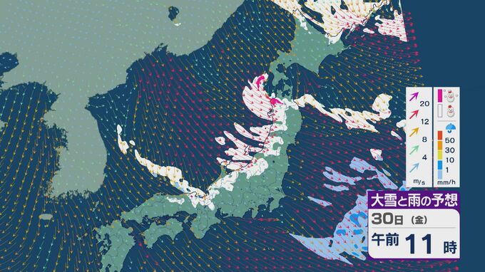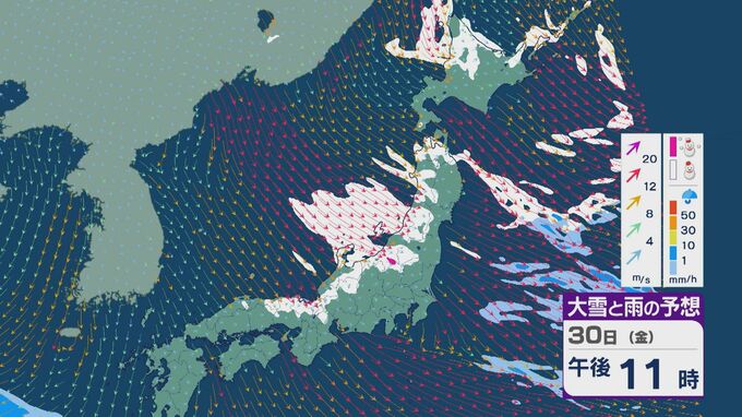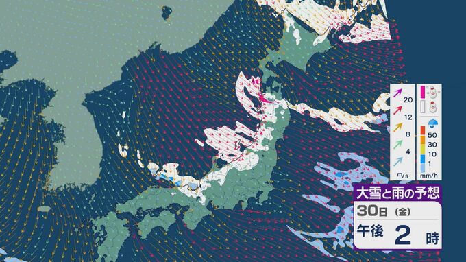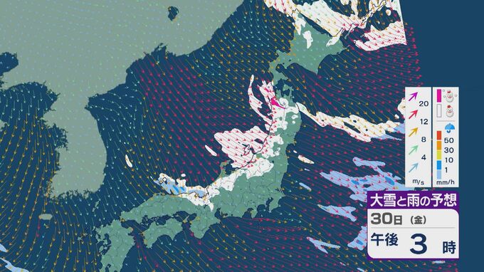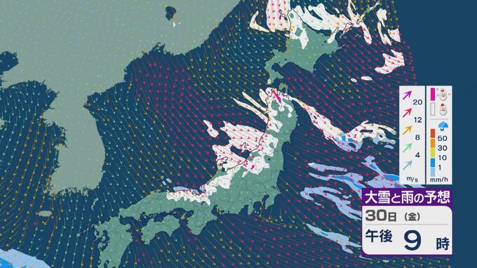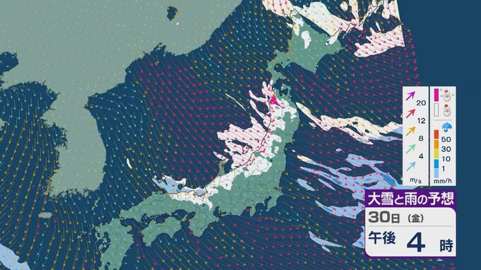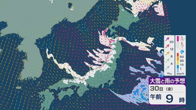 【大雪情報】「JPCZ」による雪雲は西日本日本海側や北陸に 29日(木)夜から30日(金)朝にかけて石川県や福井県で雪の降り方強まる 平地でも大雪に注意・警戒を 雪と風シミュレーション 北陸放送 2026年1月29日(木) 13:33 国内 30日(金)も、未明は近畿北部や福井県、石川県で雪の降り方が激しいところがありそうです。 山陰や近畿北部、北陸から東北の日本海側では、北西の風が強く一日を通して雪が降るでしょう。