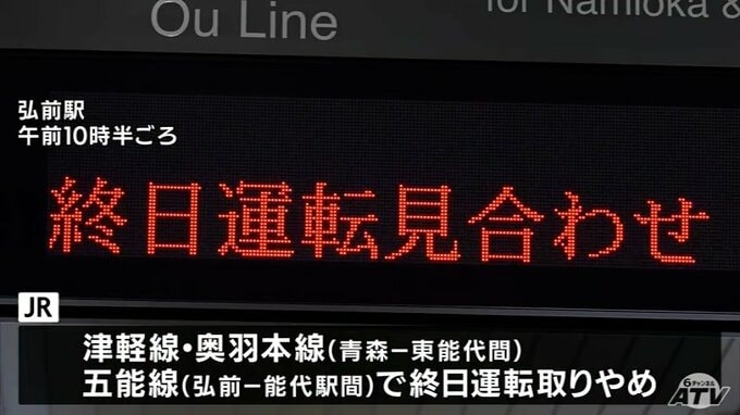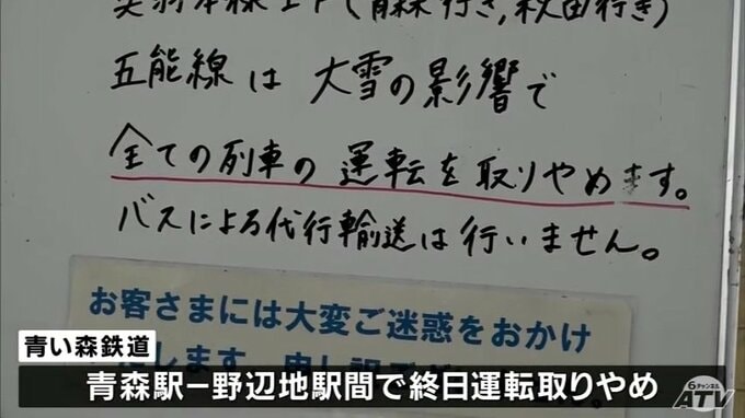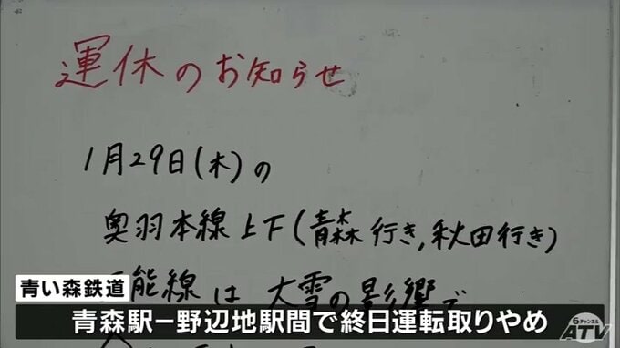 【大雪・交通】29日もJR在来線144本が運休 JR奥羽本線(東能代ー青森駅間)・津軽線・五能線(能代-弘前駅間)は終日運転取りやめ 影響は約1万3000人に 豪雪の青森県 鉄道ダイヤ乱れ続く 5時間前