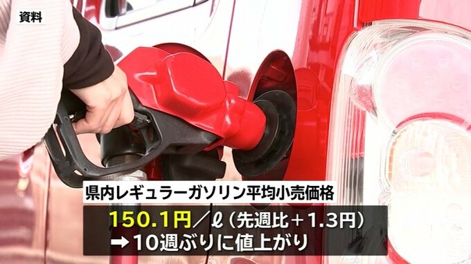 石油情報センターによりますと、26日時点の県内のレギュラーガソリンの平均小売価格は先週に比べて1.3円高い150.1円でした。