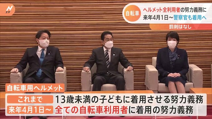 すべての自転車利用者に対しヘルメット着用の努力義務を課す、改正道交法が来年4月1日から施行されることになりました。事故の際のリスクを軽減させるヘルメット、着用は浸透するのでしょうか。「こちらがヘルメッ…