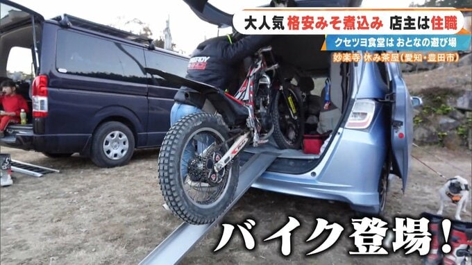彼らの後ろをついていくと…なんと!車の中からバイクが登場!