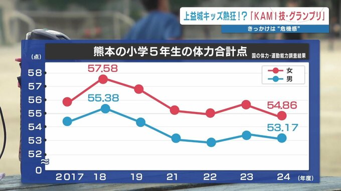 国の調査によると、熊本県内の小学生の体力はコロナ禍前の水準に戻っておらず、2025年は男女ともに前年を下回りました。