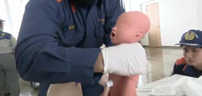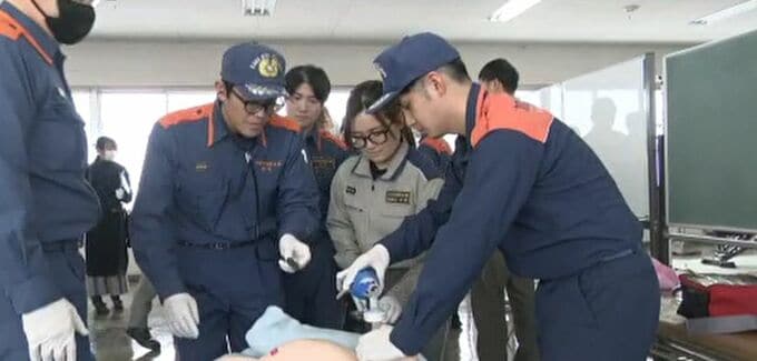 参加した救急救命士らは、人形を使っての分娩介助や、赤ちゃんを蘇生する方法を学びました。