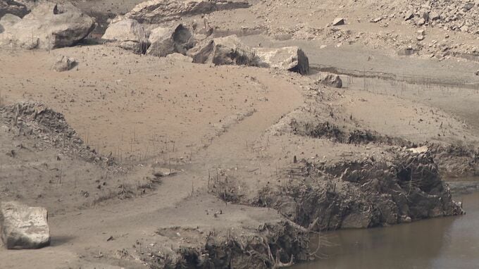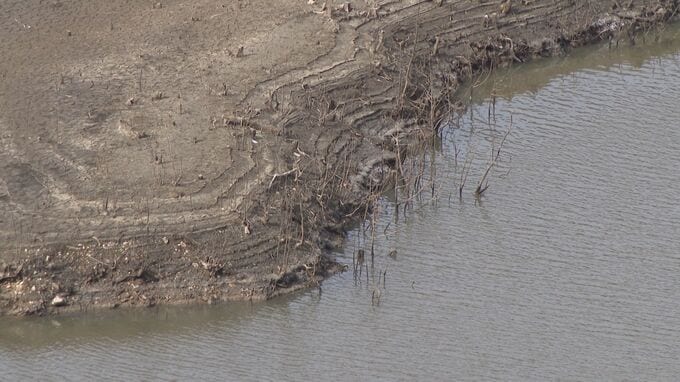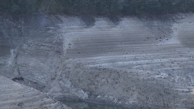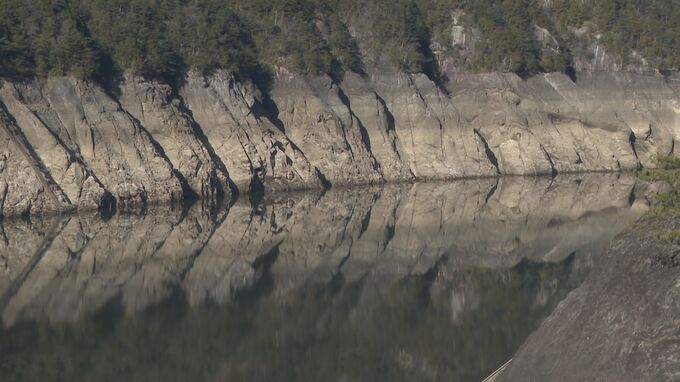 このままだと3月には貯水率が0%に? 愛知・新城市の宇連ダム いまの貯水率は6.8% 水面は満水時より40メートルも低く
