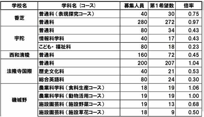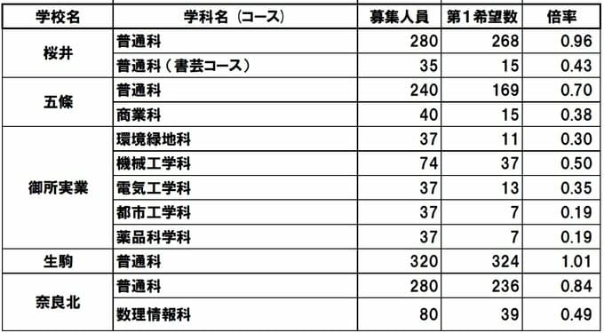 【奈良県公立高校入試2026】一条1.42倍、郡山1.37倍…奈良高校ほか各校の倍率は?宮大工目指す新設コースも【高校受験1月発表 全日制全校掲載 進路希望調査】 毎日放送 2026年1月29日(木) 19:30 国内 【倍率一覧】桜井高校・五條高校・御所実業高校・生駒高校・奈良北高校 【倍率一覧】香芝高校・宇陀高校・西和清陵高校・法隆寺国際高校・磯城野高校 【倍率一覧】磯城野高校・高取国際高校・王寺工業高校