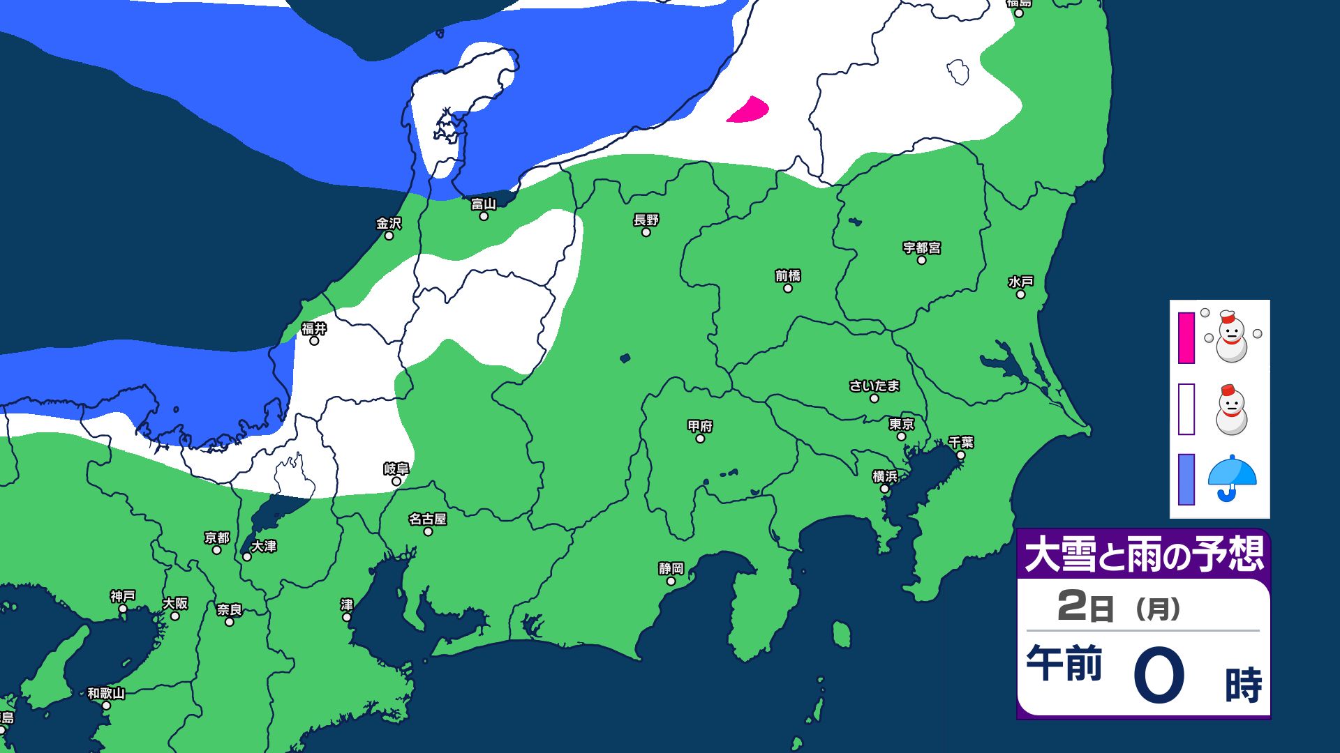 【雪の予想】東京23区で1センチの降雪予報 東京、横浜、千葉、埼玉、つくば、栃木、群馬、山梨の2月3日(火)までの雪雨シミュレーション【気象庁 29日午後5時発表】|TBS NEWS DIG