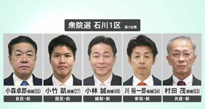 1区では立憲民主党と公明党が結成した中道改革連合から候補者が出馬していないことから票の行方に注目が集まっています。