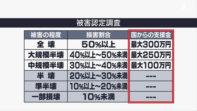 悩みの種となっているのは、国の支援を受けるための「被害認定調査」です。この調査では建物ごとに「全壊」や「半壊」など6段階で評価され、その判定で支援額が決まります。