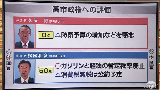 共産党の新人・久保将 氏(71)は、「国民のためになっていない」と「0点」としています。