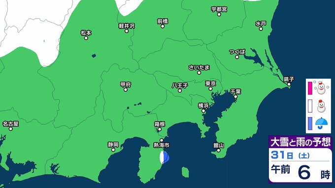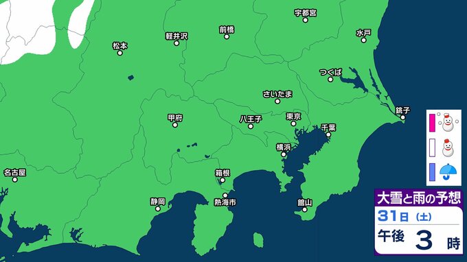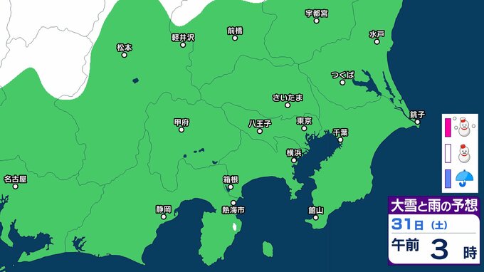 【雪】東京23区で1センチの降雪予報 関東地方では30日明け方にかけて平野部でも積雪となるところが… 東京、横浜、千葉、埼玉、つくば、栃木、群馬、山梨の2月3日(火)までの雪雨シミュレーション【気象庁 29日午後5時30分更新】 RSK山陽放送 2026年1月29日(木) 17:34 国内 31日(土) 3日までの雪雨シミュレーション