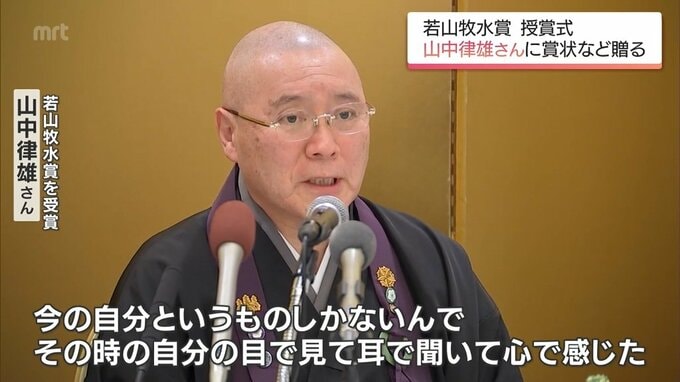 短歌文学の世界で優れた功績を挙げた人に贈られる若山牧水賞の授賞式が宮崎市で行われ、歌人で僧侶の山中律雄さんに賞状などが贈られました。今年度の若山牧水賞に選ばれたのは、秋田県在住の歌人で僧侶の山中律雄…