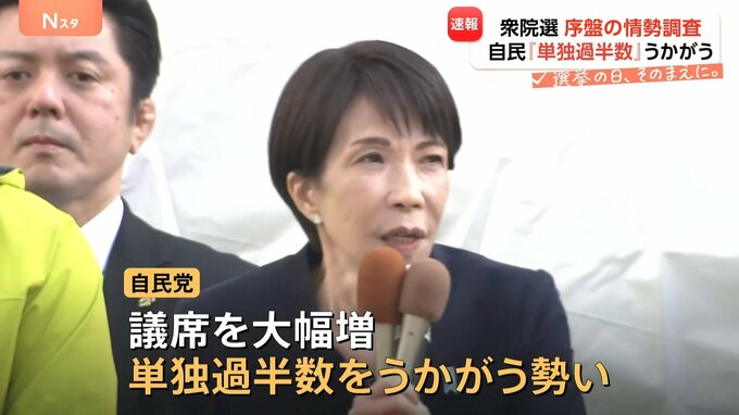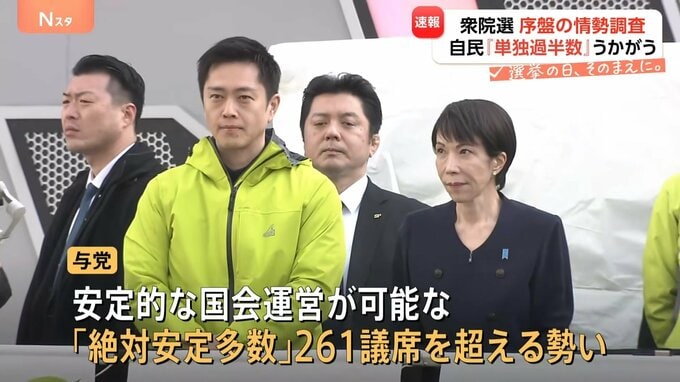 ただ、自民・維新を合わせた与党では、安定的な国会運営が可能になる「絶対安定多数」261議席を超える勢いとなっています。