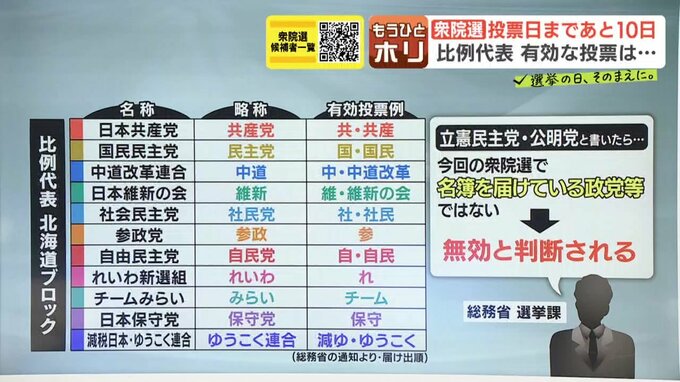 今回の衆院選では、与野党ともに『新たな枠組み』という部分も注目されていますが、そこで気を付けたいのが比例代表を投票する時の『表記の仕方』なんです。