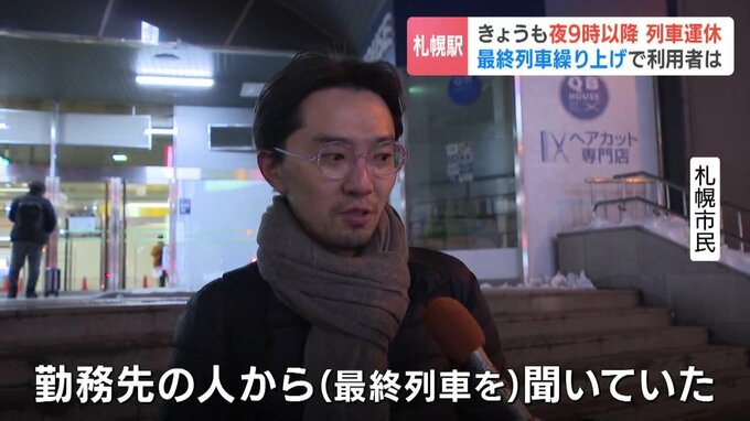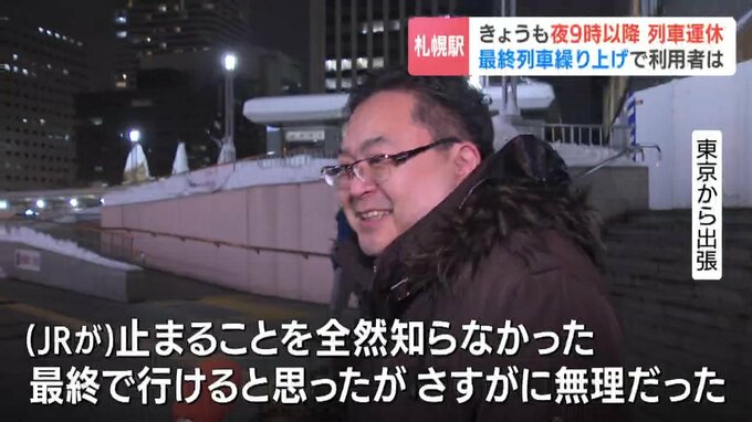 「勤務先の人から(最終列車を)聞いていた。仕事が遅くならないように帰ってきた。帰宅できないとさすがにきつい」