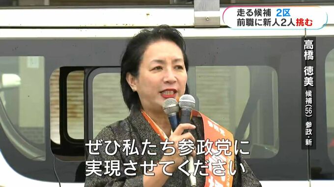 2区には参政党所属の地方議員が4人いて、既存政党の批判票の取り込みを図るほか、政治に関心のない層への政治参加を呼びかけています。