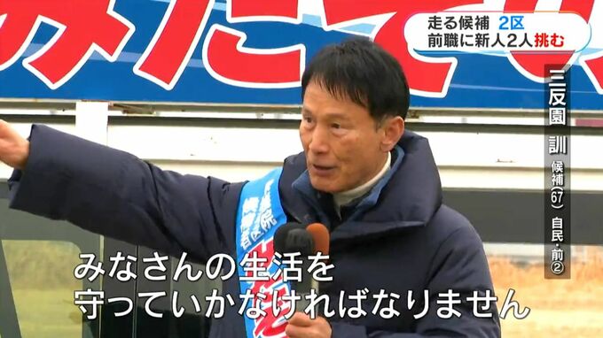 自民党・前職の三反園訓さんは、指宿市出身の67歳です。県知事を1期務めたあと、無所属で臨んだ2021年とおととしの衆院選で2回連続、自民候補を破り、去年1月、自民に入党。党公認候補として初めての選挙戦です。現在、高市内閣で財務大臣政務官を務めています。