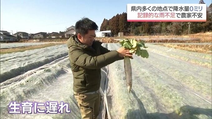 1月、宮崎県内は平野部を中心に多くの地点で降水量が0ミリと、記録的な雨不足となっています。この影響で農作物の生育に遅れが出ていて、農家たちは一日も早い恵の雨を待ち望んでいます。(田尻怜也記者)「こちら…