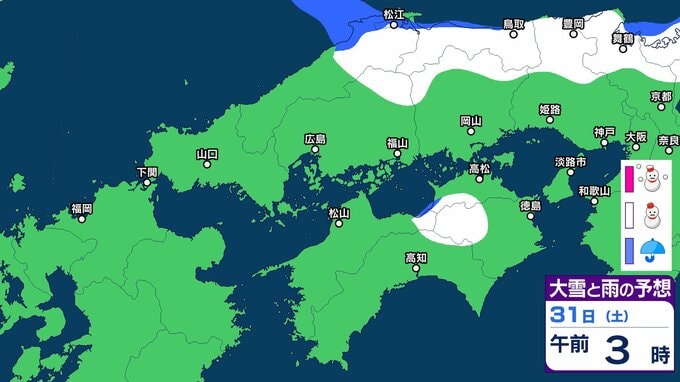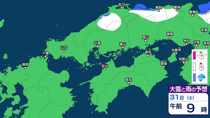 【雪】中国・四国地方ではいつ降る? 雪や路面の凍結による交通障害に注意・警戒を 広島・岡山・山口・鳥取・島根・香川・愛媛・高知・徳島 2月3日(火)までの雪雨シミュレーション【気象庁 29日午後6時更新】 RSK山陽放送 2026年1月29日(木) 18:45 国内 天気 31日(土)