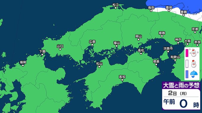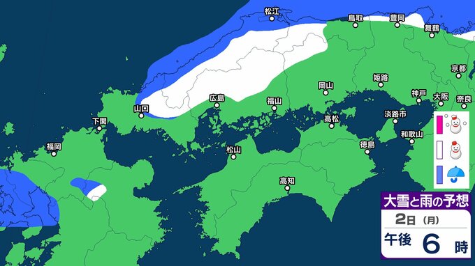 【雪】中国・四国地方ではいつ降る? 雪や路面の凍結による交通障害に注意・警戒を 広島・岡山・山口・鳥取・島根・香川・愛媛・高知・徳島 2月3日(火)までの雪雨シミュレーション【気象庁 29日午後6時更新】 RSK山陽放送 2026年1月29日(木) 18:45 国内 天気 2日(月)