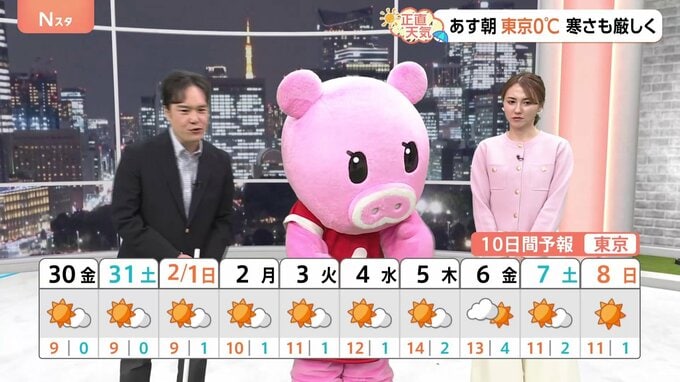 1月30日の関東の天気を山形純菜キャスター、河津真人気象予報士がお伝えします。・関東顕著 30年に一度の少雨・あす朝 東京0℃ 寒さも厳しく