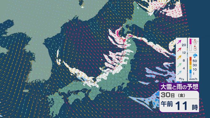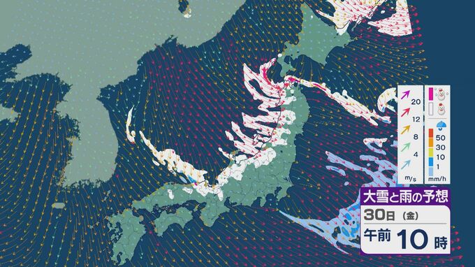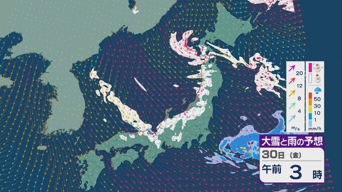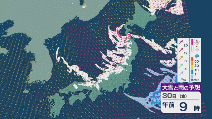 【大雪情報】朝起きたら「積雪が急増」のおそれ “JPCZ”による雪雲は若狭湾に 30日(金)朝にかけて石川県や福井県で雪の降り方強まる 平地でも大雪に注意・警戒を 雪と風シミュレーション 北陸放送 2026年1月29日(木) 19:21 国内 その後も山陰や近畿北部、北陸から東北の日本海側では、北西の風が強く一日を通して雪が降るでしょう。