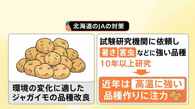 北海道JAの対策では、毎年気温や天候が違うので、そういった環境の変化に適した品種改良を行っているとのこと。