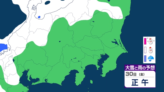 気象庁が30日早朝に発表した情報によりますと、愛知や近畿、関東の平野部で懸念されていた「警報級の大雪」の可能性は低くなりました。関東地方の平野部では降雪となる所がありますが、積雪となる可能性は低くなりました。
