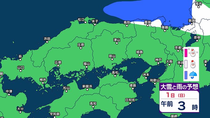 【雪】中国・四国地方の今後の雪は? 広島・岡山・山口・鳥取・島根・香川・愛媛・高知・徳島 2月3日(火)までの雪雨シミュレーション【気象庁 30日】 RSK山陽放送 2026年1月30日(金) 11:06 国内 天気 1日(日) 14 15 16 17 18 19 20 21