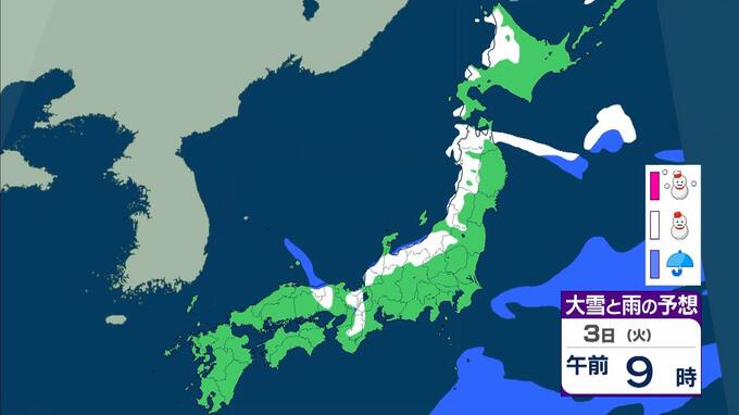凍える朝、各地で最も寒い時期下回る最低気温 堺市は前日差マイナス3℃ 夕方にかけて雪と交通障害に注意 柳ケ瀬など1メートル超の雪積もる【雪・寒気シミュレーション】 毎日放送 2026年1月30日(金) 10:31 国内 【画像で見る】3日(火)の雪と雨のシミュレーション