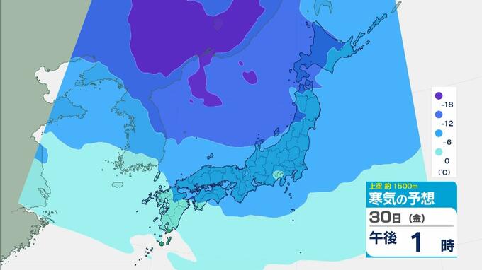 凍える朝、各地で最も寒い時期下回る最低気温 堺市は前日差マイナス3℃ 夕方にかけて雪と交通障害に注意 柳ケ瀬など1メートル超の雪積もる【雪・寒気シミュレーション】 毎日放送 2026年1月30日(金) 10:31 国内 【画像で見る】寒気のシミュレーション(30日(金)~31日(土))