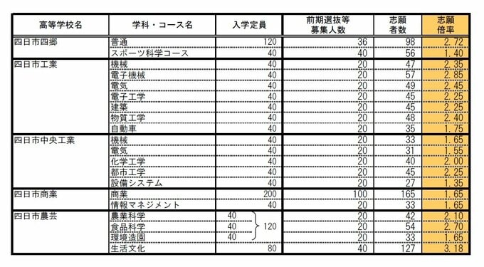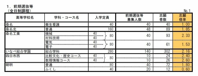 三重県公立高校入試2026 志願倍率 「松阪・理数」4.68倍 「津西・国際科学」4.40倍 「神戸・理数」2.98倍 「川越・国際探究」2.75倍 前期選抜・特別選抜・連携型中高一貫教育の出願状況 令和8年度
