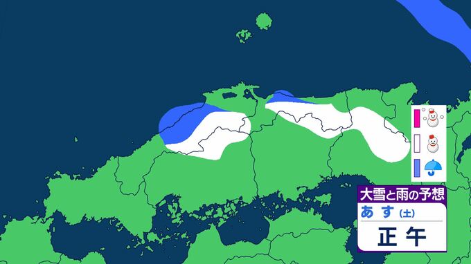 岡山県は、寒気や湿った空気の影響でおおむね曇り、北部では昼前まで雪の降る所がある見込みです。