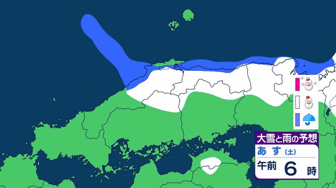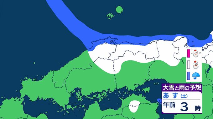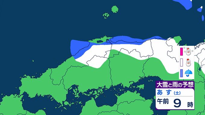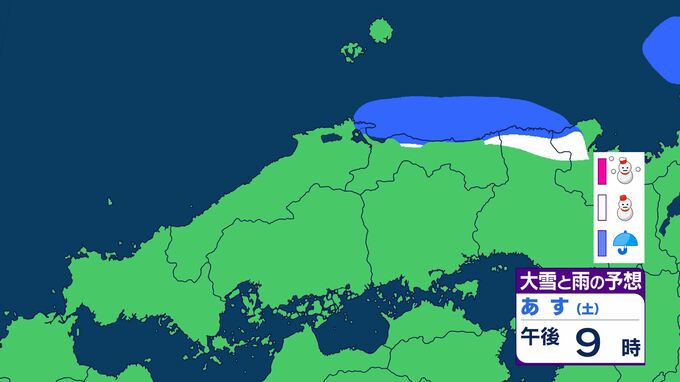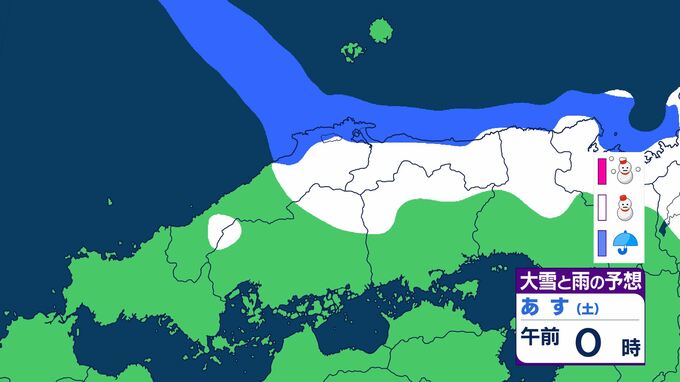 島根県は、寒気や湿った空気の影響で曇り、東部と西部を中心に朝まで雪や雨が降る見込みです。