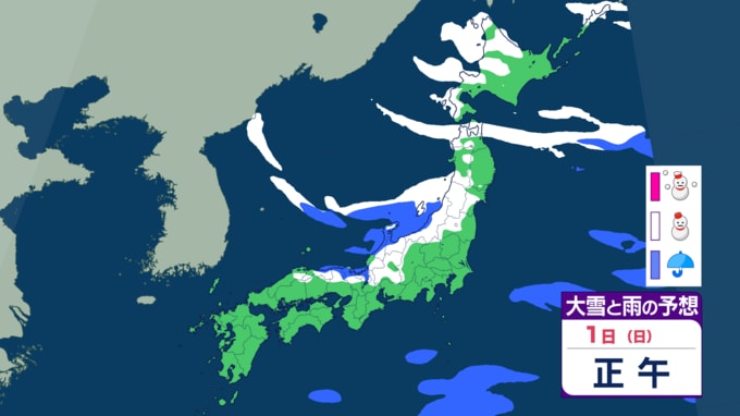 ▶2月1日(日): 「南岸低気圧」が本州の南を東進。寒気が残るなかでの通過となるため、太平洋側の広い範囲で再び雪や雨が降る恐れがあります。