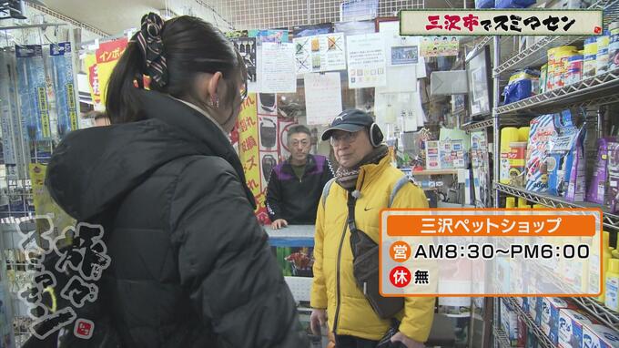 吹雪の中を歩き、次に訪れたのは熱帯魚や鑑賞魚などを扱っているお店です。齋藤アナ、ユニークなお魚を見つけたようです。