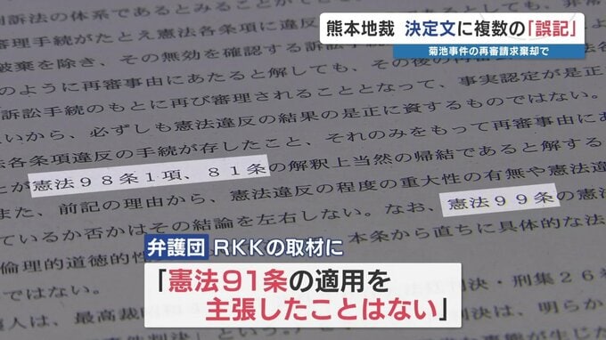 弁護団はRKK熊本放送の取材に「憲法第91条の適用を主張したことはない」と憤っています。