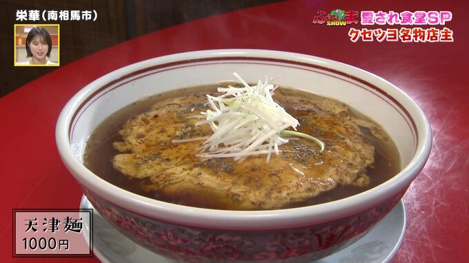 お店の看板メニューは「天津麺」。ふわふわの卵が乗ったこの一品は、朝8時から仕込むというスープに豚足を使用し、コクのある餡と混ぜ合わせることで奥深い味わいを生み出しています。麺も青森県の製麺所に特注するというこだわりよう。