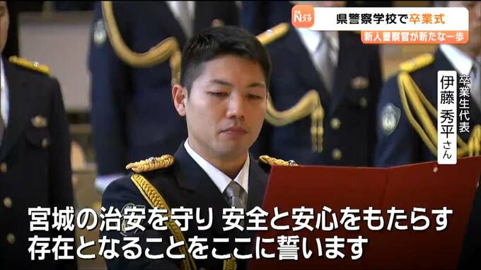式には2025年度、宮城県警の警察官として採用された18歳から33歳の54人が出席しました。式では卒業生代表に卒業証書が手渡され、辞令が交付されました。