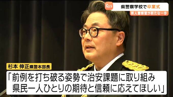 その後、杉本伸正県警本部長が「おのおのが前例を打ち破る姿勢で治安課題に取り組み、県民一人ひとりの期待と信頼に応えてほしい」と訓示しました。