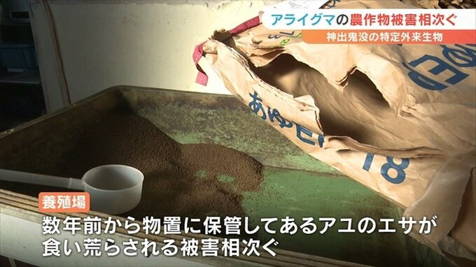 この養殖場では数年前から物置に保管してあるアユのエサが食い荒らされる被害が相次いでいました。