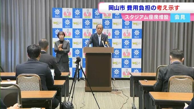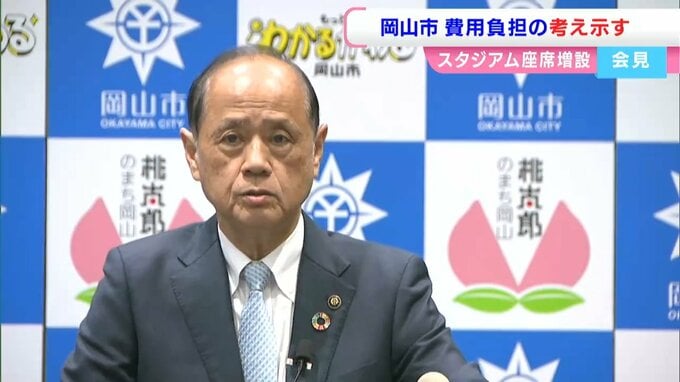 大森市長は、岡山県が発表したJFE晴れの国スタジアムの観客席増設について、岡山市も一定の費用を負担する意向を県に伝えたということです。