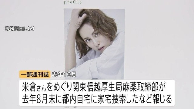 米倉さんをめぐっては、一部週刊誌が去年10月、関東信越厚生局麻薬取締部が去年8月末に都内の自宅に家宅捜索したなどと報じていました。