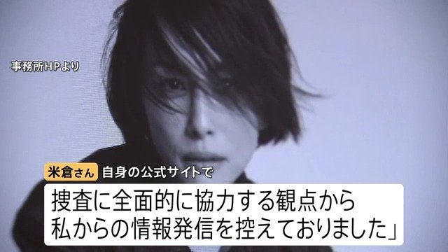 ■公式サイトで家宅捜索を受けたと認めた米倉さん 「一区切りついたと認識」とコメント