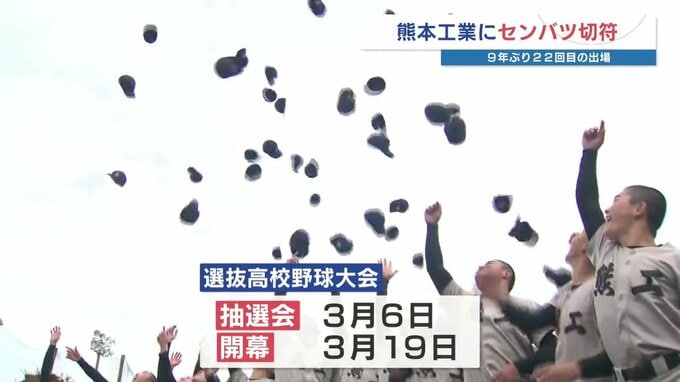 3月に開幕する春のセンバツ甲子園の出場校が今日30日に発表され、熊本工業が9年ぶり22回目の出場を決めました。