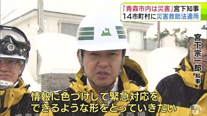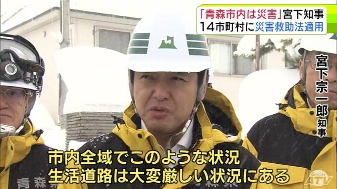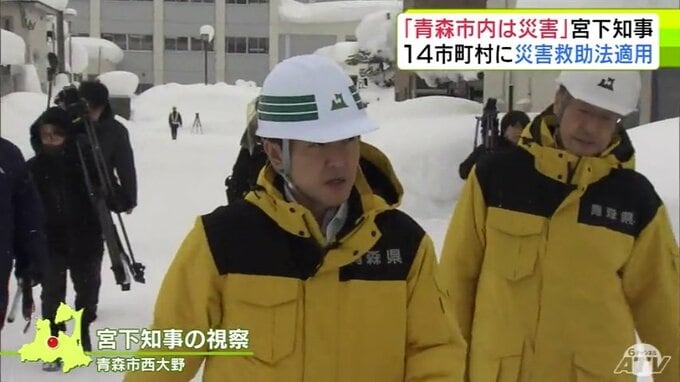 「青森市内は災害」“記録的豪雪”積雪170cmに迫る青森市内の道路状況を青森県・宮下宗一郎 知事が視察 自治体と連携して対応を加速へ 15市町村の災害救助法の適用を決定 青森テレビ 2026年1月30日(金) 21:00 国内