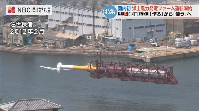 道のりは決して平坦ではありませんでした。世界的に見ても実績の少ない「浮体式」。2012年、最初は五島市椛島沖に今の半分のサイズの試験機を浮かべることから始まりました。
