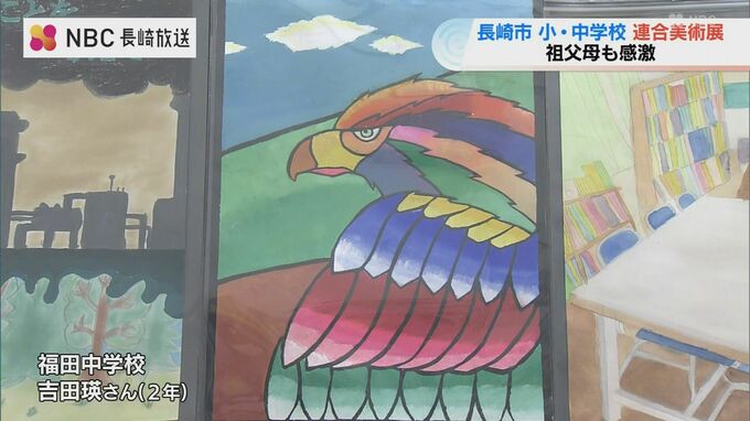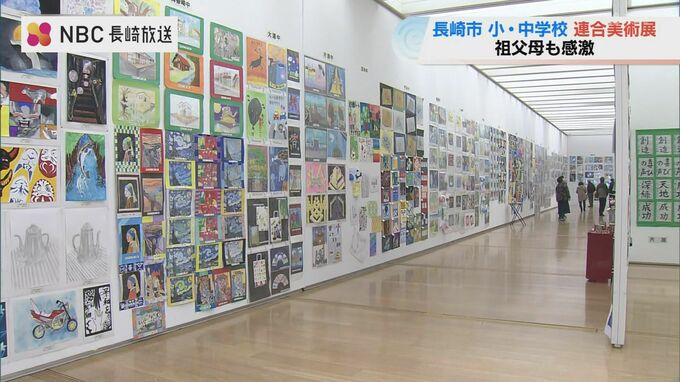 長崎市の県美術館で開催中の「長崎市小・中学校連合美術展」。絵画や版画、書道作品などおよそ7000点が展示されています。
