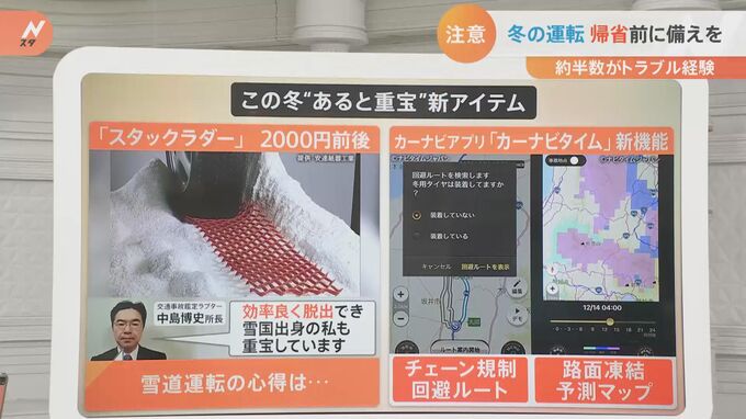 中島博史所長は「効率よく脱出でき、雪国出身の私も重宝しています」と話しています。価格は2000円前後で、そこまで幅をとらないので収納も簡単にできそうです。