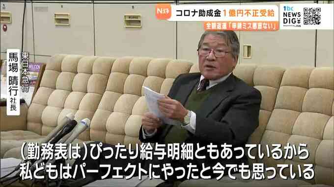 東日本急行の馬場晴行社長は「勤務表の管理を創業以来、はんこで行っていてミスは修正液などで直していた」と認めたうえで「悪意はなく不正受給ではない」と説明しました。